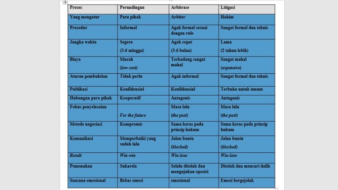 D. Perbandingan antara Perundingan, Arbitrase dan Legitasi (Peradilan)