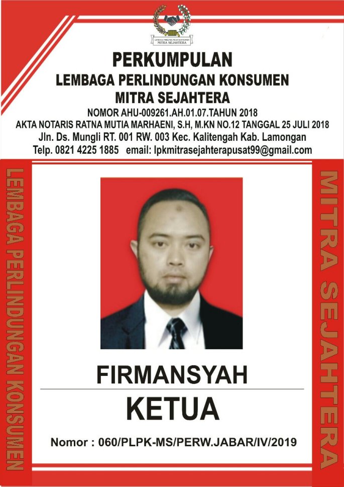 Atas berkat Rahmat Allah Yang Maha Kuasa serta keprihatinan banyaknya persoalan yang merugikan konsumen dan didukung oleh ketidakberdayaan konsumen, maka Kantor Hukum PLPK-MS & PARTNERS Dan Perkumpulan Lembaga Perlindungan Konsumen Mitra Sejahtera PLPK-MS mendeklarasikan dirinya sebagai Lembaga yang bergerak dalam bidang Perlindungan Konsumen yang berjuang bagi kepentingan konsumen akan hak dan kewajiban serta pelaku usaha agar berusaha semaksimal mungkin secara sehat dan bertanggung jawab.