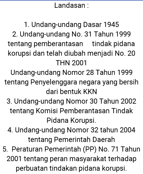 DASAR HUKUM PEMBERANTASAN KORUPSI