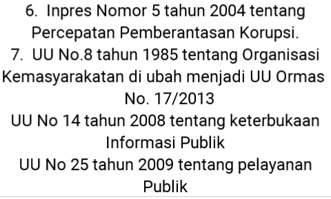 3. Undang-undang RI No. 28 tahun 1999 tentang Penyelenggaraan Negara yang bersih dan bebas dari Korupsi Kolusi dan Nepotisme (KKN)